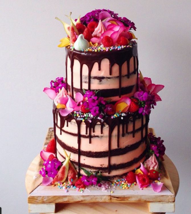А здесь две тенденции вместе. Так называемый "голый торт" с "дрипом" ))